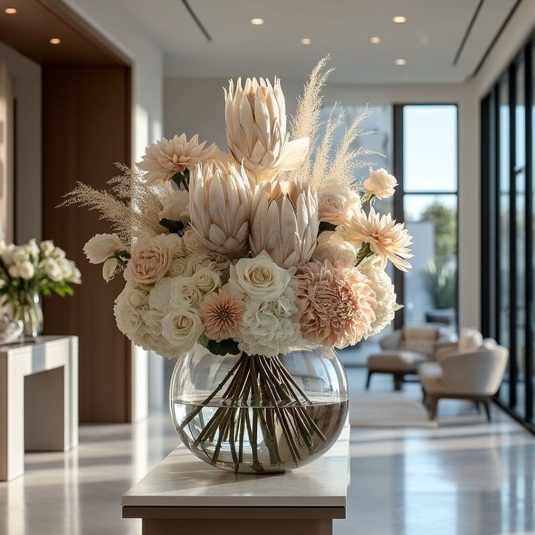 Mix with soft, textural florals like the Creamy White Blossom Branch to create a layered, high-contrast arrangement that feels elevated yet approachable.