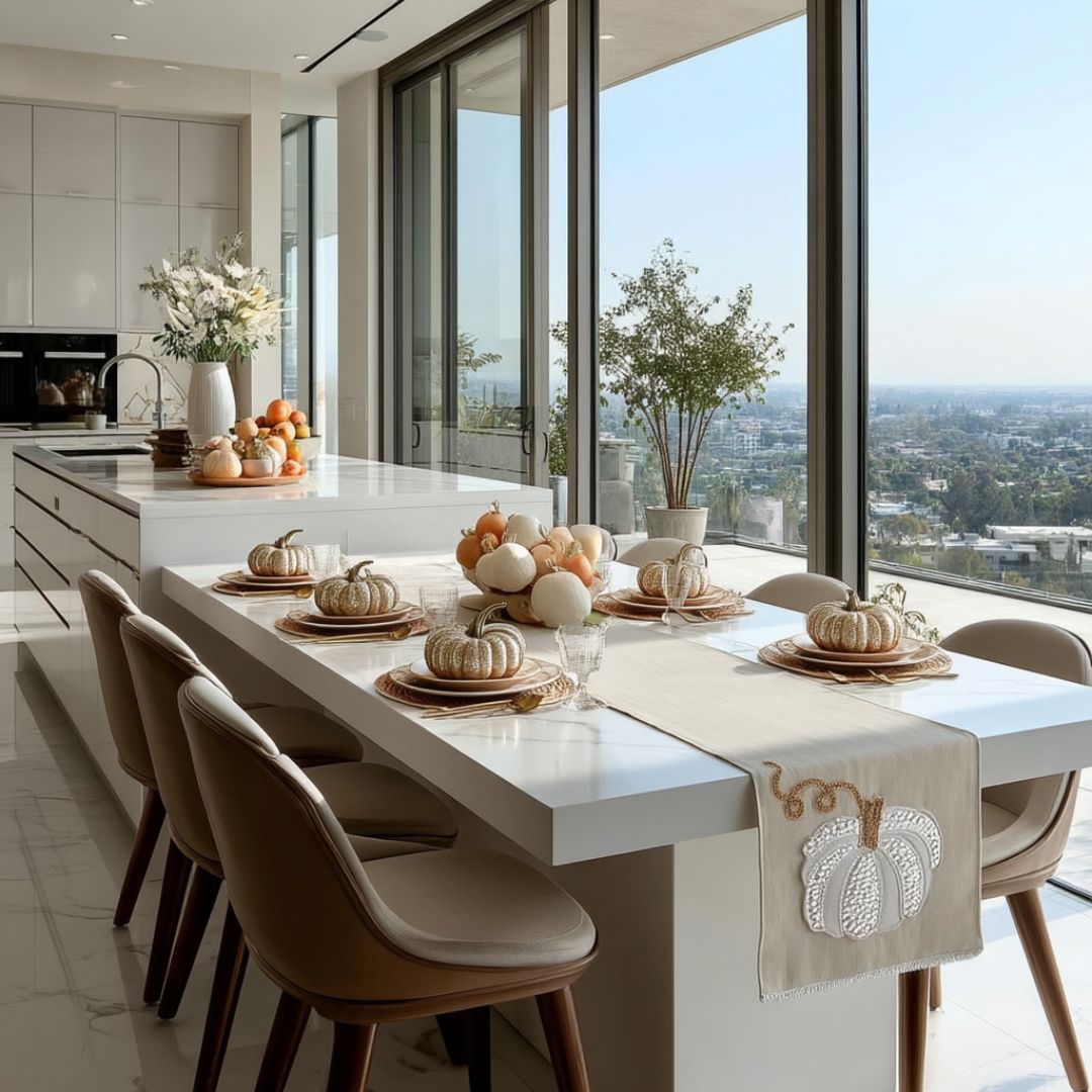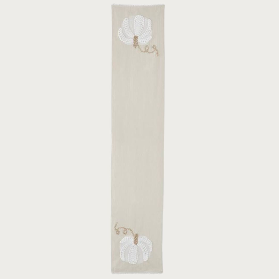 72 Inch Cream & White Embroidered Pumpkin Table Runner