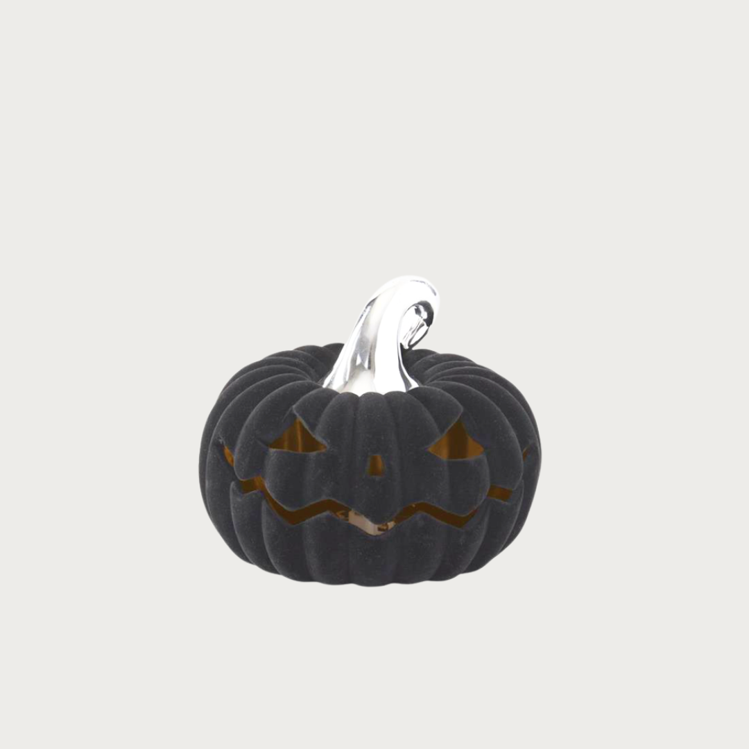 A little spooky, a little stylish — our LED Black Velvet Jack O’ Lanterns bring a modern edge to classic Halloween décor. Finished in a rich black velvet with polished silver stems, these pumpkins glow from within to cast the perfect seasonal mood. Each has a built-in timer (6 hours on, 18 hours off), so once you turn them on, they’ll light up your evenings all season long. Battery is included, because the last thing you need in the middle of fall is a hunt for batteries.