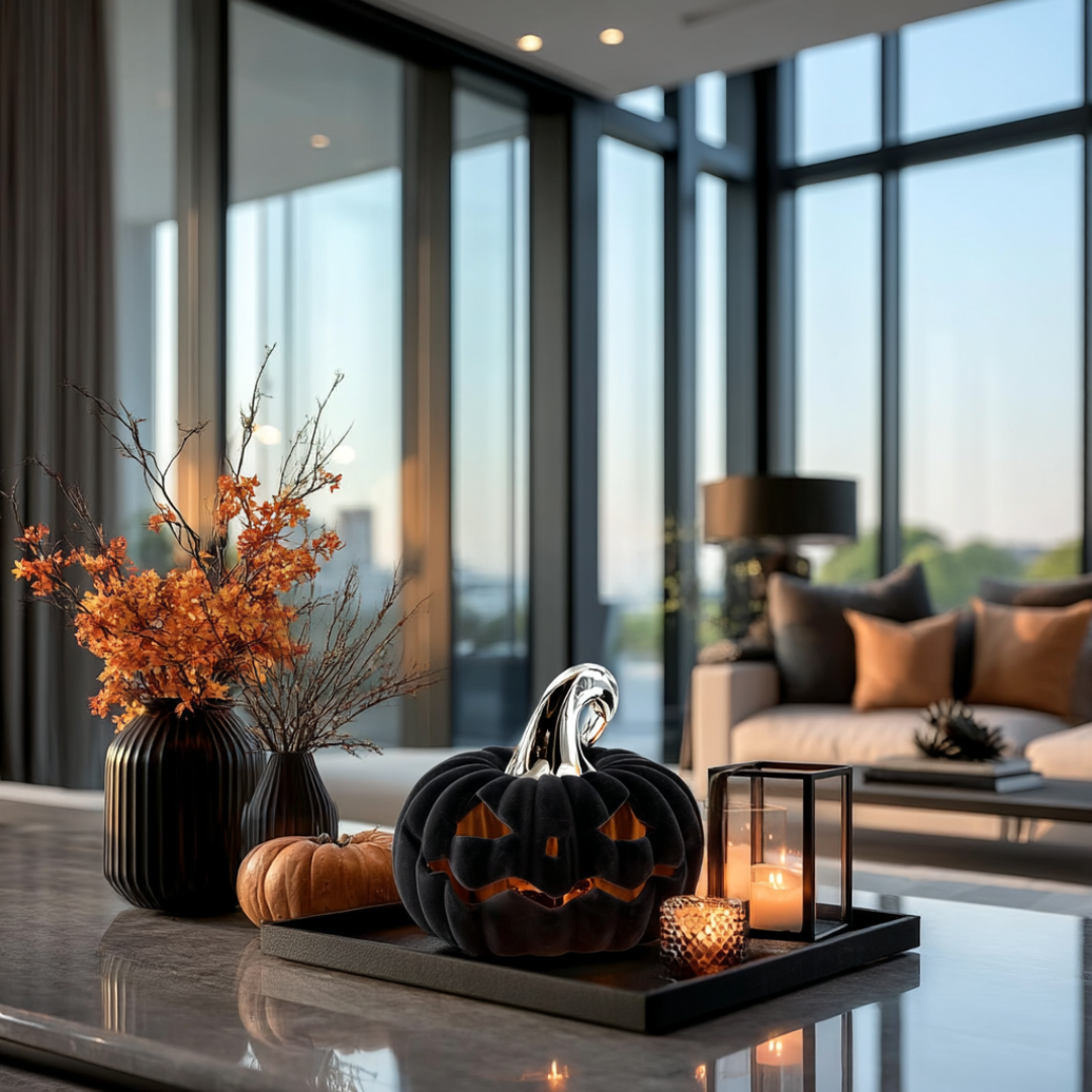Pair the round pumpkin with stacked coffee table books for a cozy, collected look.