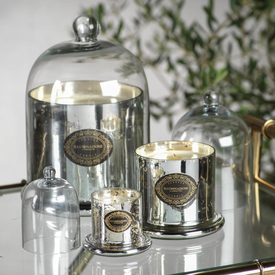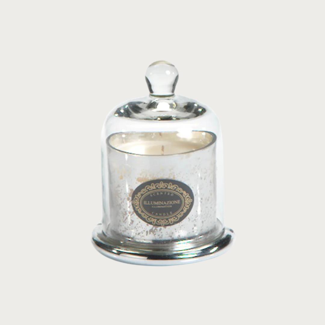 Silver Antiqued Mercury Glass Candle w/ Cloche - Siberian Fir Scent