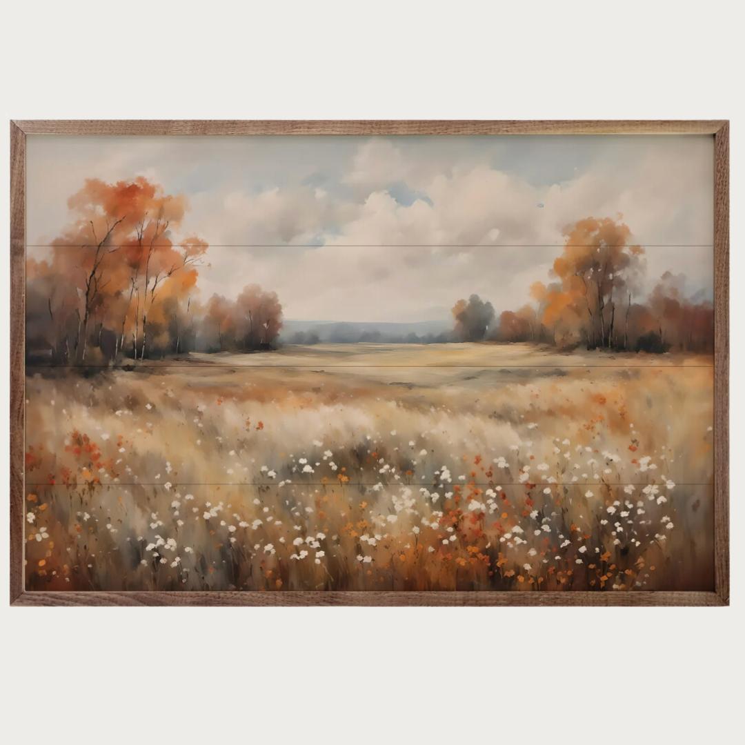 As seen in our Quarterly Modern Farmhouse Collection. This stunning hand made art is the perfect complimentary piece to your fall decor collection. Crafted from high-quality American hardwood planks, it features a hand-painted face and is adorned with vibrant designs printed using UV cured ink. Each piece is a one-of-a-kind creation