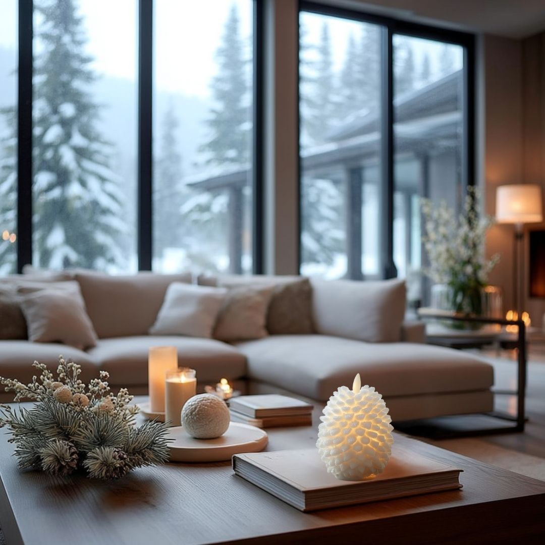 Luminara 4.5" Inch Flameless White Wax Snowy Pinecone Candle