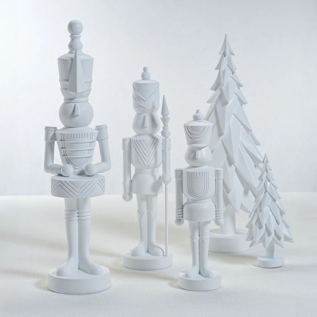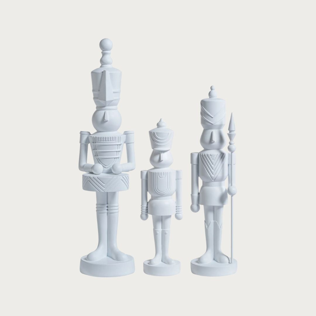 Traditional soldiers, reimagined for the modern home. This set of three matte white resin soldiers is proof that you can honor holiday nostalgia without the glitter fallout. Their sculptural silhouettes and smooth matte finish feel crisp, modern, and artful — like something you’d find in a gallery rather than your grandmother’s mantel. Each soldier stands tall (and strikingly stylish), ready to bring a sense of calm sophistication to your holiday display. Think “Silent Night,” but make it designer.