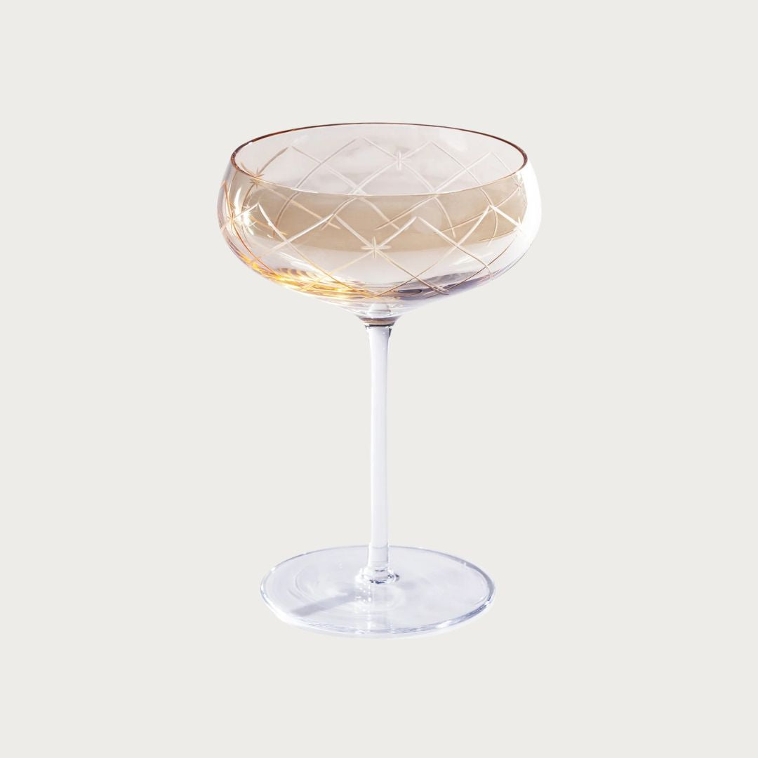 If sophistication could sparkle softly, it would look like this. Our set of four luster coupe glasses brings a hint of golden glow to every pour — from champagne to craft cocktails (or, let’s be honest, sparkling water that just feels like a celebration). Each glass features a delicate etched pattern and a warm amber luster finish that catches the light in all the right ways. Whether you’re hosting a quiet evening or a full holiday soirée, these are the kind of glasses that make any drink — and any moment — feel instantly elevated.