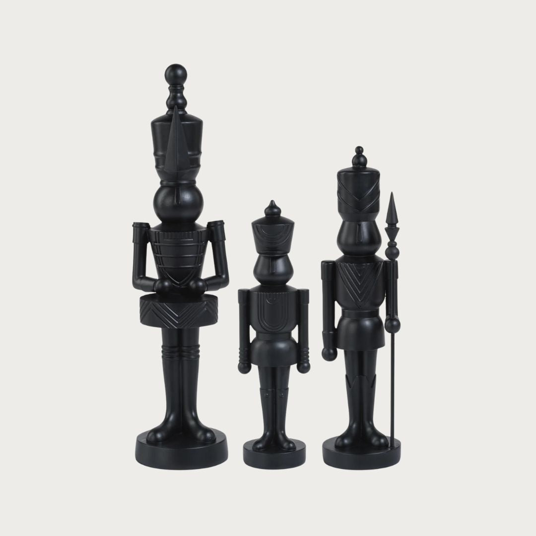 Not all holiday décor needs to sparkle to steal the spotlight. Our Set of Three Matte Black Resin Soldiers brings depth, contrast, and modern edge to your seasonal styling. Sculptural in form and striking in finish, each soldier feels like a minimalist art piece that just happens to be holiday-ready. Their smooth, matte texture and clean silhouettes add a grounding sophistication to all the season’s shimmer — proof that restraint can be every bit as captivating as glitter.