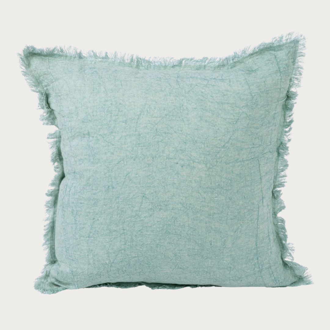This linen pillow in Eucalyptus Mist brings an easy softness to a space — relaxed, airy, and quietly refined. The gently washed tone sits somewhere between green and blue, offering just enough color to feel fresh while still playing beautifully with a neutral palette.