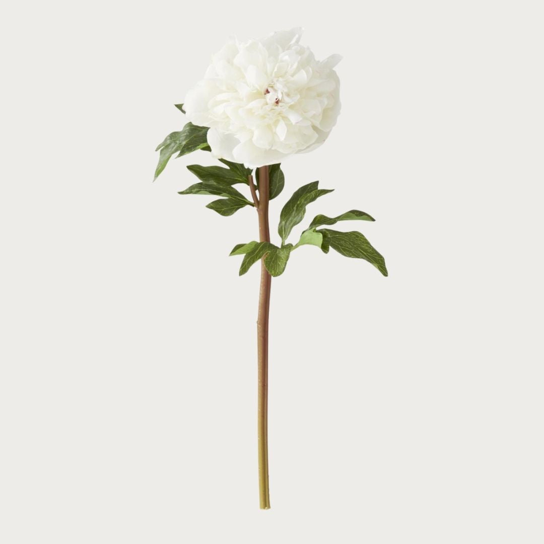 Crafted using advanced real touch materials, this peony stem offers the look and feel of a freshly cut bloom at its peak. It works effortlessly as a standalone statement or as a foundational element in larger floral arrangements. Clean in color and generous in scale, it brings balance and refinement to a wide range of interior styles—from modern to more traditional spaces.