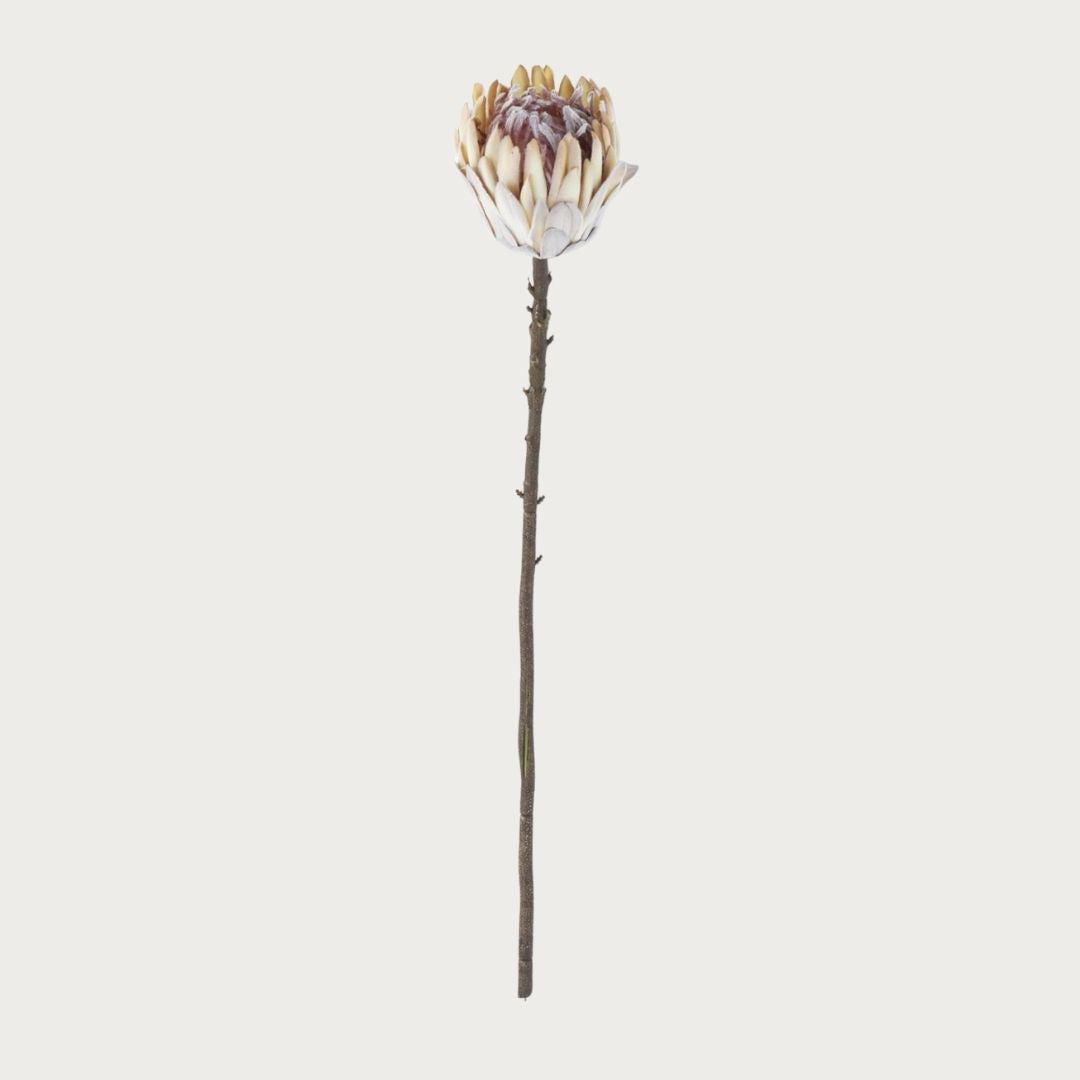 There’s something undeniably sculptural about a king protea — and this Creamy Heirloom Mauve version leans into that drama with a softer, more refined edge. Finished in a velvety, muted mauve-cream tone, this 26-inch stem brings depth and texture without overwhelming a space, making it feel intentional rather than overly styled.