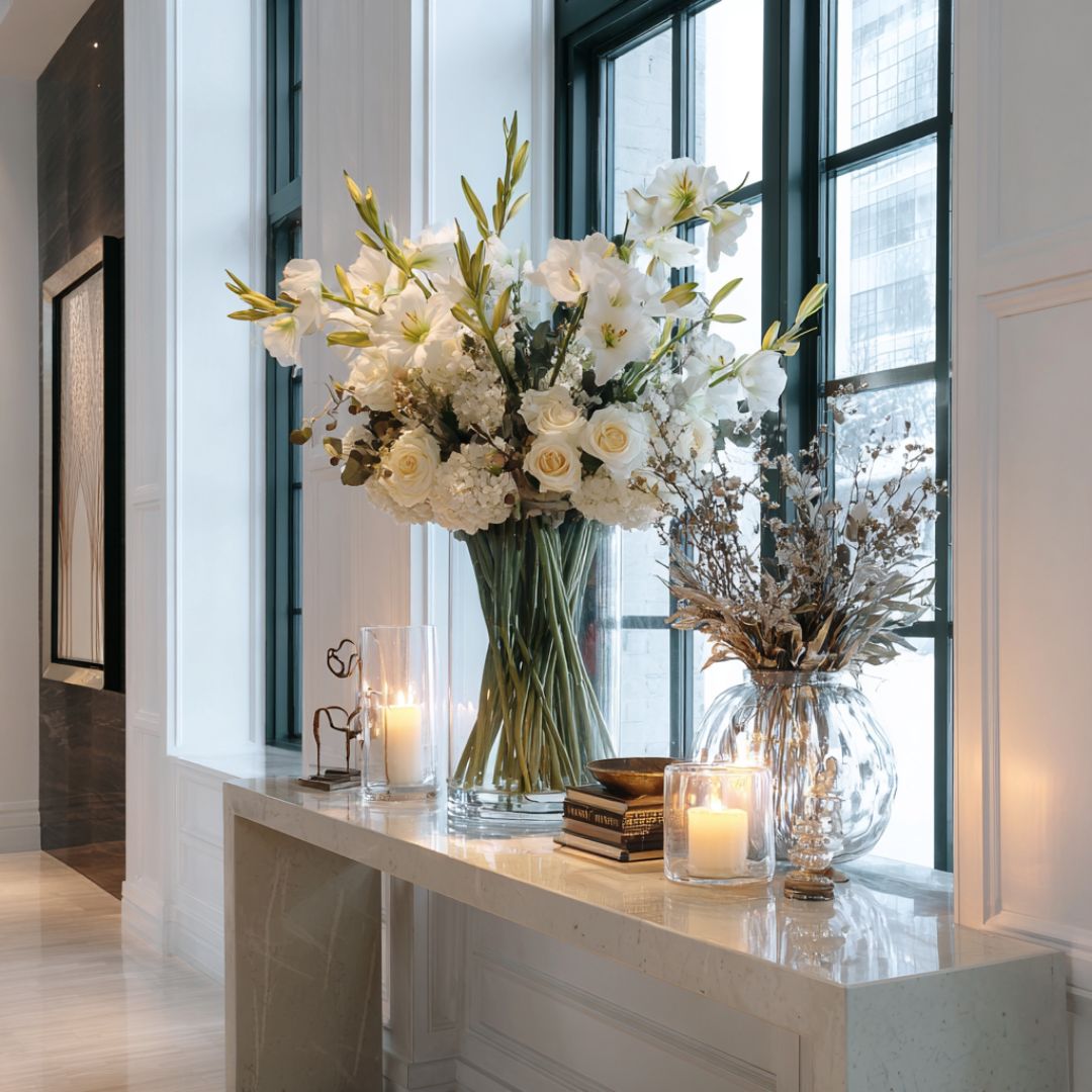 Whether displayed on its own in a tall glass vase or gathered in clusters for a fuller statement, this stunning stem brings effortless refinement to your winter styling. Its timeless silhouette and serene hue make it an ideal accent for dining tables, entryways, or mantel displays—adding a note of calm luxury to the season.